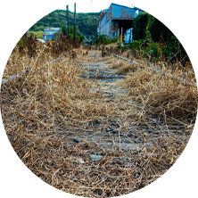 雑草が生い茂り、枯れた草が散乱すると人目につきにくく、ポイ捨てなど治安が悪化します。またタバコによる不審火も発生する原因となります。