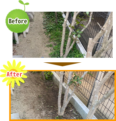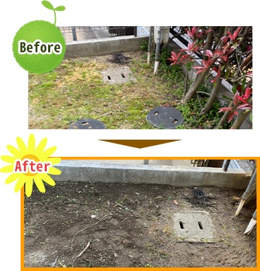 植えている草木を避けてきれいに除草いたします。